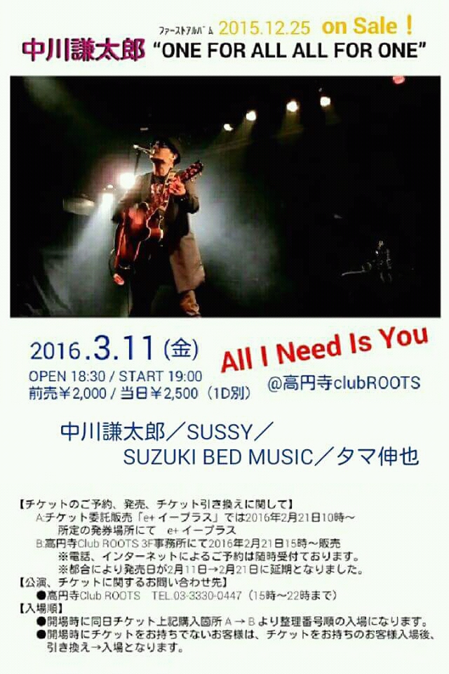 3月11日(金曜日)高円寺club roots にて行います。個性派、正統派、様々なリアルアーティスト達の爆発、