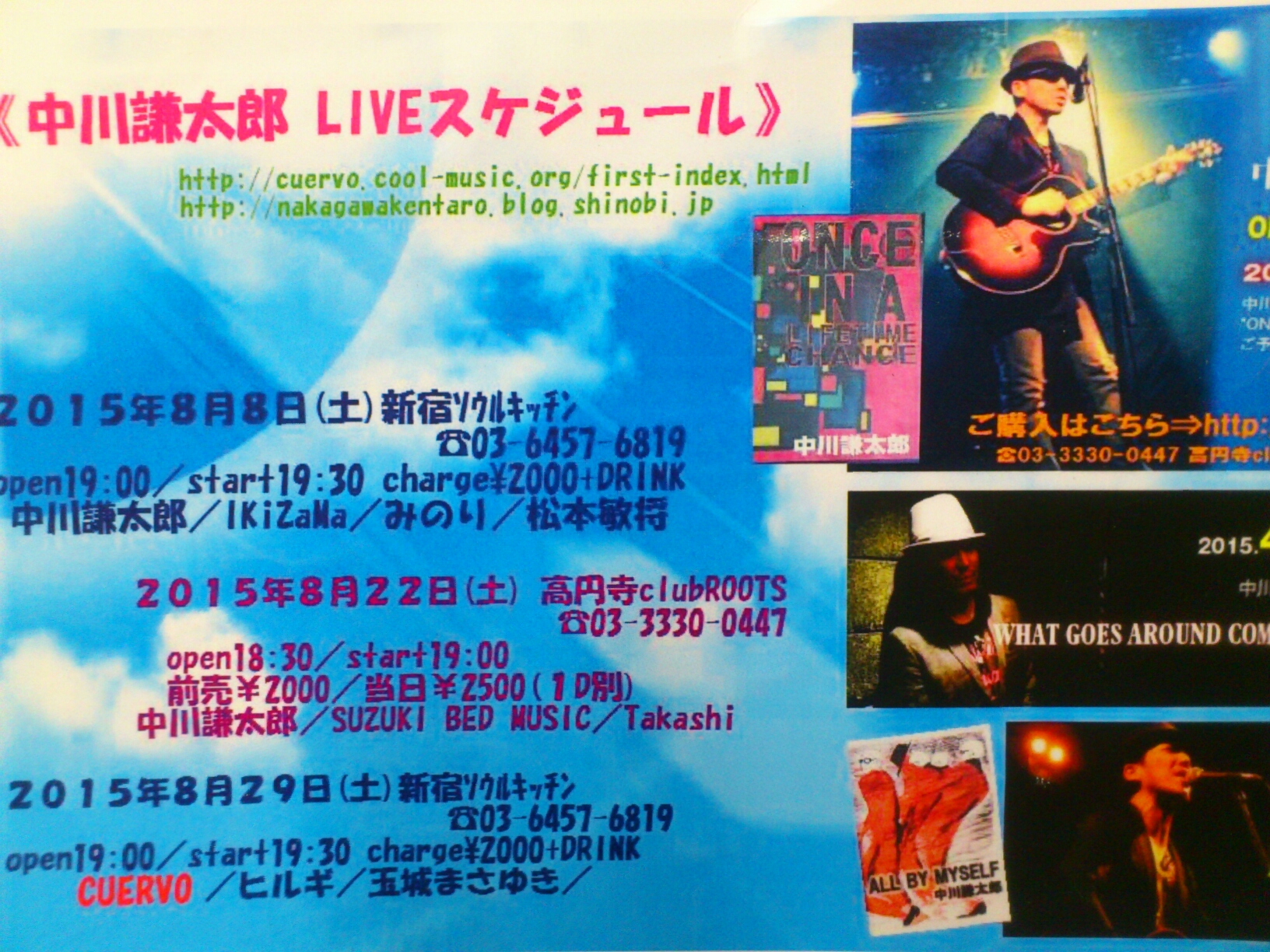 一人活動のライブは、ここで一旦区切りますので、お時間、ご予定の許す方、お待ちしています。
