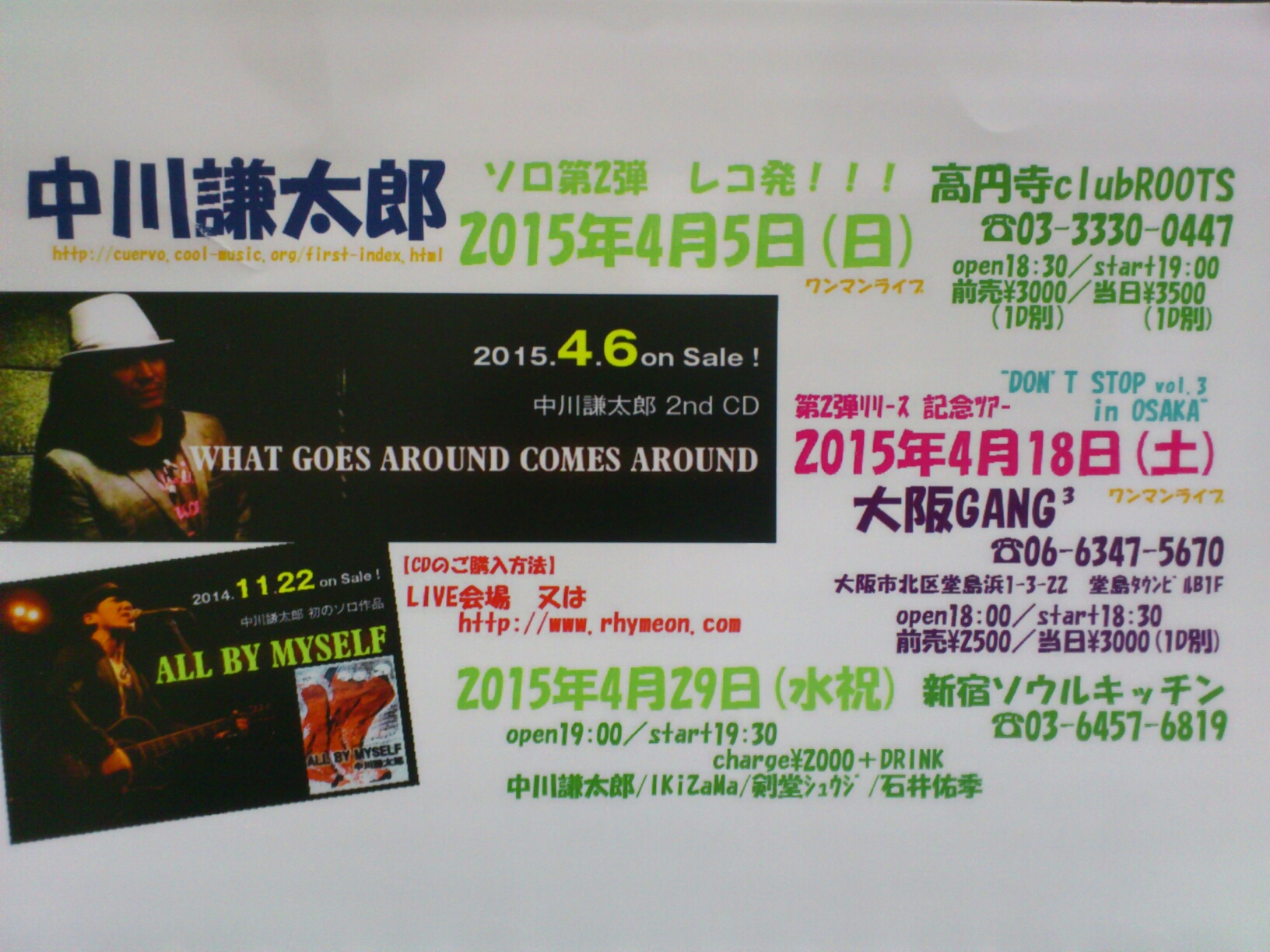高円寺clubROOTSソロ、来てくれた方、手紙や花などくれた方、魂を飛ばしてくれた方、本当にありがとうございました。ライブを重ねる度に自分自身の足りなさを感じ、でも、前に進むことができるのは、応援くださるみんなのおかげです。今後とも応援よろしくお願いします!!!!!